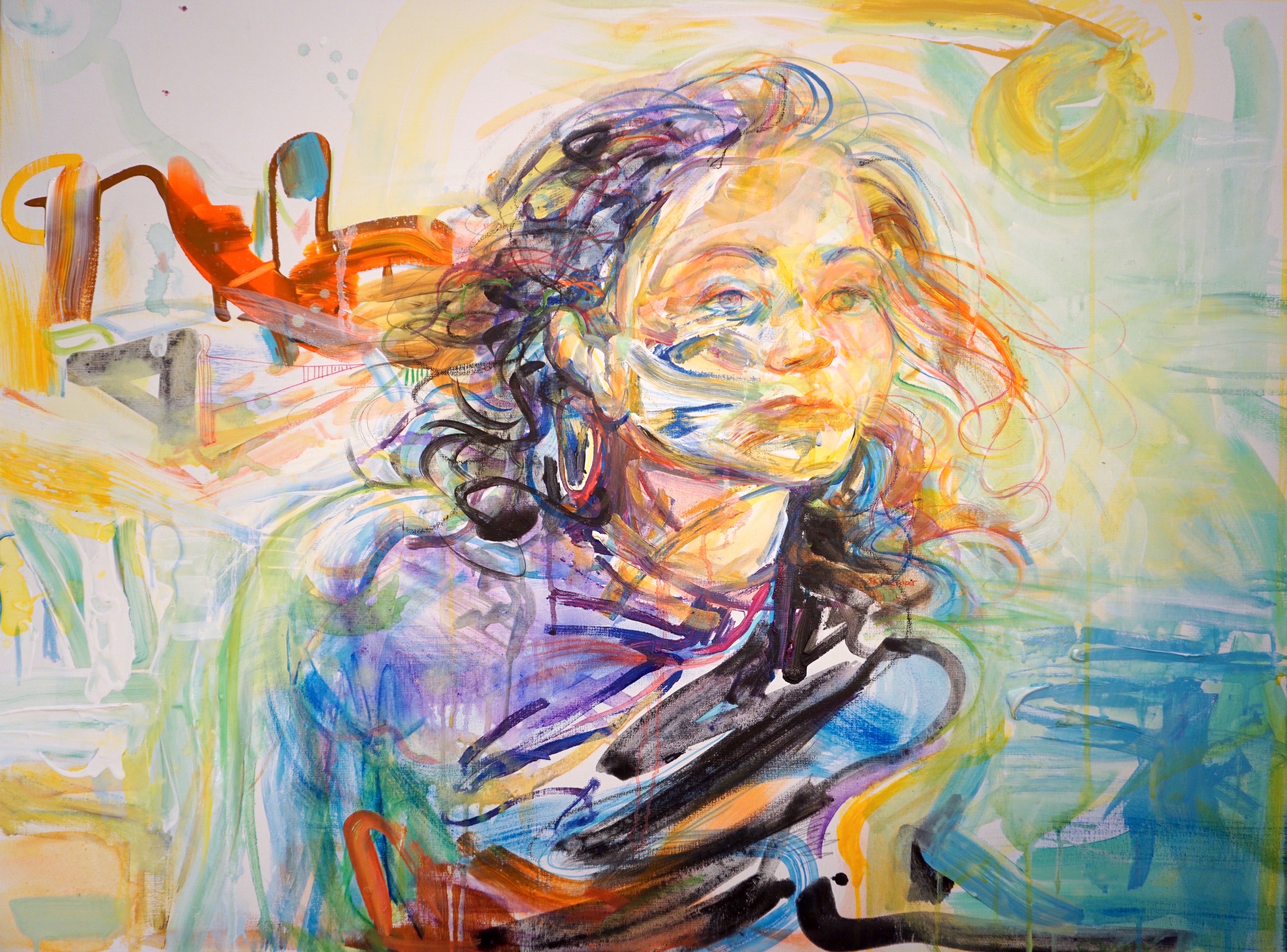 Skyscraper 40 x 30 oil over acrylic and marker 2018